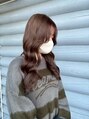 透け感モーブブラウン艶カラー大人可愛いゆるふわロングヘア