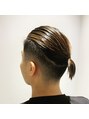 マンバンヘアーの内側をフェードで。同じ長さでツーブロックを入れるより、フェードでグラデーションをつけてツーブロックを入れるとおしゃれ感が増しますね。