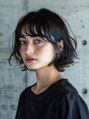 黒髪のクールさと、くせ毛風パーマの柔らかさが絶妙なバランスのショートボブ。ウェットな質感に仕上げることで、アンニュイで今っぽい雰囲気に。スタイリングはオイルやバームを揉み込むだけで完成する、再現性の高いお洒落ヘアです。