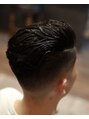 <理容室><バーバー>シェーバーを使わずバリカンのみでぼかした七三フェードスタイルは必見です。直毛の方はニュアンスパーマで無造作なくせ毛風に!!アップバングで爽やかを演出!!毛先の動きと無造作な質感がポイントです。