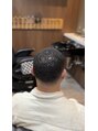 <理容室><バーバー>1.8mmのカールアイロンを使用し床屋ならではのスタイルに。周りは低めに刈り上げ海外風バズカット。レザーでラインアップをしフェイスラインも整える。※ネットからのご予約は承っておりません。