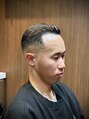 <理容室><バーバー>王道のシチサンフェードです!ハイスキンフェードでより男らしく床屋でしか出せない雰囲気に◎顔周りのラインアップでスタイルにメリハリが出ます!またハードパートにすることでご自身でのスタイリングがとても簡単になります◎