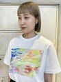 ワンブリーチでオレンジみを抑える為にくすみベージュカラーで明るめに!ぱつっとボブは耳にかけてもおろしても可愛いのでおすすめです◎