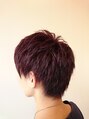 さっぱりした印象のショートスタイル。暖色系のピンクバイオレットで柔らかさをプラス☆誰にでも合わせやすいスタイルです!