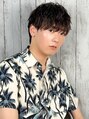 人気のマッシュベースのカットに、ランダムに束感を出す事で中性的な人気のスタイルです。スタイリングもWAXを揉み込むだけで再現可能となっております。