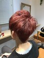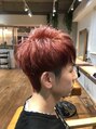 ブリーチ後、レッド系でカラーリングさせて頂きました☆サイドツーブロック、襟足は刈り上げ。トップは動きを出して、前髪は少し長めに流してマッシュ風です☆