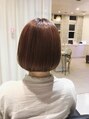 ぱっつんボブにピンクベージュをプラス。大人カワイイを目指す方にオススメです!(ピンクベージュをしっかりと出すためにハイライトを先に入れてからカラーをしています。)