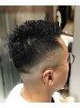 周りを―スキンフェードに。トップはソフトモヒカン調にカットして毛先を無造作になるようにスタイリングしました。