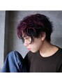 ネイビーブルーにアクセントのパープルを足してショートカットにより動きをプラス。色相の系統が似ているもの同士なので個性的なのですが、奇抜になりすぎずオススメです。