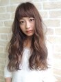 『小顔』その希望叶えます!どんな方でも、流し前髪や斜めバングの顔まわりの似合わせカットで小顔を作り、ご自宅でも簡単にスタイリングでき似合わせることができます!カラーは、透明感のある、ミルクティーカラー。ゆるくパーマをかけると楽にもなります!