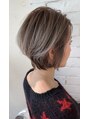 顔周りの髪を長めに残し、バックをスッキリ、頭の形を綺麗に見せるようにカットした前下がりのショートヘア。360度どの角度から見ても素敵なシルエットになるようカット致します。カラーは明るめのアッシュベージュでこなれ感と柔らかさを。