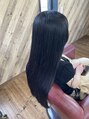 艶やかなブラックカラー×ロングストレート。毛先を整えて、より一層まとまりのある仕上がりに。シンプルだけど洗練された大人ヘア。/ブラックカラー/髪質改善酸熱トリートメント/グレイカラー/ヘッドスパ