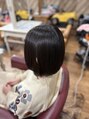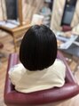 しっとりツヤ感のあるワンレングスボブにカット。乾かすだけでまとまるので、毎日のセットも楽ちんです。/ボブ/美髪改善酸熱トリートメント/グレイカラー/ヘッドスパ