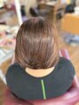 エドルクオンブラウンカラー。赤みを抑えた、上品で柔らかなブラウン。Rトリートメントで内部補修、手触りなめらかに。グラデーションカットで動きと軽さをプラスし、乾かすだけでまとまるスタイルへ。/美髪改善酸熱トリートメント/グレイカラー/ヘッドスパ