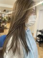 極細に入れたシークレットハイライトでトーンアップしたのちに全体も明るめにカラー◎全頭ブリーチをせずに透明感をUPさせるときは極細ハイライトおすすめです♪アプリエカラー使用