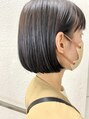 人気のミニボブ◎襟足ギリギリからカットしてバランスをみていきます♪地毛よりほんのり明るめのイルミナアッシュ・少しの明るさだけでも重めの印象を消してくれるのでダークトーンカラーもおすすめです◎