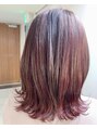 ベリーピンクのデザインカラーです。ブリーチはしていないですがベースの色を最大限明るくしてカラーバターで発色良くカラーしております!