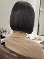 切りっぱなしがかわいいミニボブストレートアイロンを通すだけで簡単に仕上がるスタイルです^^カラーは今の季節におすすめのモノクローム柔らかいくすみ感がとってもかわいいお色味です!