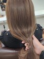 まろやかなハイトーン、シアベージュケアブリーチでダメージを軽減しているのとアプリエカラーでやわらかい質感になるので仕上がりもダメージを感じにくいですよ!気になる方は気軽にご相談ください^^