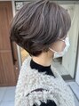 ナチュラルハイライトを活かしたラベンダーアッシュ・くびれショートボブで首元スッキリスタイルです