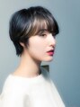 全体的に透明感のあるダークトーンにして、ポイントカラーをプラス。シンプルな中にも程よい個性のある外国人風ショートスタイルに。カラーの部分でもっと遊ぶのもアリです!