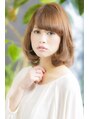 風に揺れるようにゆるい毛先のカールがボブヘアをよりナチュラルに。ボブスタイルを軽く、優しげなイメージにします。【池袋店】