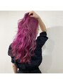 全体をブリーチしてピンクパープルをオンカラー!とにかく派手にしたい方おすすめです!カラーバターなので事前にご相談ください!