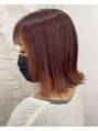 ピンクブラウンの切りっぱなしボブ!暖色カラーとボブが春っぽくてとても可愛いです!これから暖かくなってくるのでヘアも明るくしましょう♪