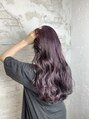 ダブルカラーでパープルカラーダブルカラーパープルフェザーバングオルチャンヘア