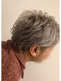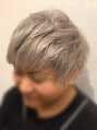 男女共に支持の高いシルバーカラー!白っぽく見せるためにかなり明るめなシルバーでONカラー!ブリーチ必須です。アンダーは刈り上げているので隠れていますが2ブロックのメンズスタイル!