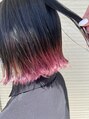 切りっぱなしボブと組み合わせると可愛い裾カラー!毛先は1度ブリーチしてピンクラベンダーをONカラー!ぱつっと感がとても可愛いカラーリングです◎ブリーチ回数は髪質によって変わりますのでご相談ください。
