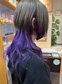 ロングウルフカットに襟足のみダブルカラーでビビッドなバイオレットカラー◎ブリーチ必須。髪質によってブリーチの回数は異なりますのでご相談ください。