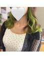 イヤリングとエンドカラーを組み合わせた最高に可愛いミックスカラー!MUSEで明るめのアップルグリーンをONカラーしました◎ブリーチの回数は、髪質と履歴によって異なりますのでご相談ください。