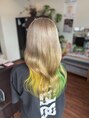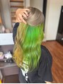 可愛いインナーカラーシリーズ!ベースはミルクティー、インナーは発色の良いカラーミューズで、イエローとイエローグリーンをONカラー◎1色に飽きてしまった方!左右のバイカラーやグラのバイカラー、2色以上も可能ですので是非ご相談お待ちしております◎
