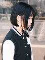 並行~やや前下がりの顎ラインワンレンボブで、首元がスッキリしていて首が長く見え、フェイスラインに沿って髪の毛があることでより小顔に見せたい方にもオススメのスタイルです!黒髪スタイルなので学生にも◎
