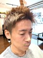 全体をブリーチしてシルバー色に仕上げました!最近は髪を明るくして白髪を目立たなくさせたりできるのでこういう風に明るく色を入れるのもありです!ヘアスタイルは横を軽く被せたアップバングのショートスタイルになります!