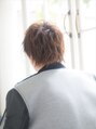 襟足は角を残してカットし全体的に少し長さを残したショートレイヤーに。毛量を程よく調整し無造作な動きと程よい束感をプラス!全体的にクセづけ程度パーマをランダムにオン!スタイリングがカッコ良く決まる好感度の高いスタイル☆