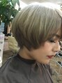 透明感のあるグレージュカラーが魅力のマッシュショート。柔らかな質感と丸みのあるシルエットで、今っぽさと洒落感を演出。
