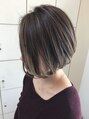 束感のあるハイライトをたっぷりと入れて、全体はシアーベージュで透明感を出しています!えりあし短めにする事によって、後頭部がフンワリして締まりのあるスタイルになっております!