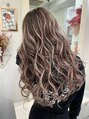 自毛は暗めのグレージュにし、エクステでハイライトをたくさんいれコントラストがはっきりしたスタイルに仕上げました!