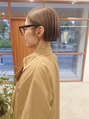 表面だけブリーチしたアンブレラカラーでカットは襟足ギリギリなコンパクトボブ。白髪ぼかしにもなりますし、そのままブリーチを伸ばしていってもデザインカラーになるので長く楽めてもちのいいスタイルです☆
