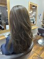 抜け感のある軽めレイヤー高めからしっかり入れて毛先を巻くだけで立体感をプラス★赤みの少ないオリーブ系カラーでくすみを出して柔らかい質感に