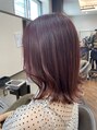 ブリーチなしの明るめベースに、赤みを入れてチェリーブラウンに♪肩にちょうどあたるくらいの長さにしているので外ハネにしやすいです!
