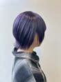 カットは当店の百田が担当しています!一番最後に室内での見え方の写真がございます!!深めの紫カラーは色落ちも綺麗なのでおすすめです!
