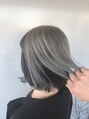 ホワイトグレージュに顔周りからバックにかけてブラックを入れてメリハリのあるスタイルになっています!カラーを色々なアレンジで見せることができる長さのボブもオススメです!