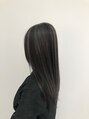 太めの筋感ハイライトにホワイトグレーをベースにはブラックグレージュのハイライトデザインのカラースタイルです。色落ちも楽しめるカラーでし。