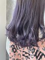 過去の毛先のブリーチ歴をいかしたカラーで濃いめ紫を。日に当たると紫がわかって可愛い!根元は薬がつけられないので毛先カラーです。