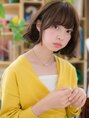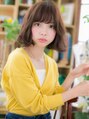 【スタイルは★ブックマーク★が便利】斜めバングで目力強調。サイドの前下がりラインで輪郭カバーして小顔見せ。くせ毛風カール&耳かけでガーリーな印象。大人かわいい要素が詰まった愛されフェミニンボブです♪(メイク担当:COVERHAIRGROUP 中田)
