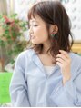 【スタイルは★ブックマーク★が便利】オン眉でガーリーに仕上げたゆるふわミディ。毛先パーマでエアリーに仕上げれば黒髪やローライトでも重くなりません。前下がりで小顔見せ。斜めバングや厚めバングで目力UPも大人かわいい。(メイク担当:川口店 成田)
