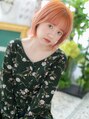 オレンジブラウン☆小顔外ハネAラインボブa戸頭10代20代30代